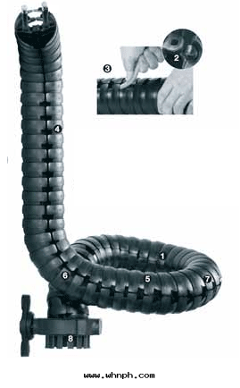 Triflex® R系(xì)統TRE.30系(xì)列 1. 可(kě)多(duō)維移動(dòng)——在(zài)複雜移動(dòng)中(zhōng)具有(yǒu)很高(gāo)靈活性(xìng),甚至是(shì)在(zài)第(dì)6軸。 縱軸上(shàng)每个(gè)鍊(liàn)节(jié)可(kě)旋轉(zhuǎn)約± 10°。 这(zhè)有(yǒu)助于(yú)引導電(diàn)缆(lǎn)通(tòng)过(guò)有(yǒu)難度(dù)的(de)幾(jǐ)何結構 2. 通(tòng)过(guò)特别的(de)“拖車設計(jì)”(=球窩系(xì)統)吸收(shōu)大(dà)量(liàng)拉力,從而(ér)可(kě)在(zài)所(suǒ)有(yǒu)軸上(shàng)平穩運轉(zhuǎn) 3. 簡單開(kāi)放(fàng)机制——易于(yú)填充和(hé)更(gèng)換预裝(zhuāng)配的(de)電(diàn)缆(lǎn)或(huò)介質(zhì)软(ruǎn)管(guǎn) 4. 卓越的(de)机械特性(xìng) 5. 小彎曲(qū)半徑和(hé)小节(jié)距——實(shí)現(xiàn)节(jié)省(shěng)空(kōng)間(jiān)的(de)安裝(zhuāng) 6. 輕(qīng)松安裝(zhuāng)和(hé)拆除——一(yī)个(gè)壓鑄部(bù)件(jiàn),因(yīn)此(cǐ)安裝(zhuāng)不(bù)费力。 牽引方(fāng)向(xiàng)不(bù)需要(yào)支承元(yuán)件(jiàn)(如鋼(gāng)缆(lǎn)、彈簧件(jiàn)等) 7. 超級穩定——由(yóu)于(yú)止動(dòng)器位于(yú)外(wài)側,精準止動(dòng)器用(yòng)于(yú)半徑和(hé)扭轉(zhuǎn)運動(dòng) 8. 由(yóu)于(yú)很容易将机器/机器人(rén)與(yǔ)智能(néng)附件(jiàn)相連(lián),所(suǒ)以(yǐ)配置时(shí)間(jiān)可(kě)降至最低(dī)
