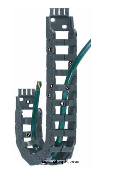 Z 14系(xì)列 - 鍊(liàn), 從外(wài)徑方(fāng)向(xiàng) 1. 可(kě)進(jìn)行扭轉(zhuǎn)運動(dòng) 2. 非(fēi)常易于(yú)填充——适合预裝(zhuāng)配插头(tóu)的(de)應(yìng)用(yòng) 3. “按鈕式設計(jì)”将鍊(liàn)节(jié)固定在(zài)一(yī)起(qǐ) 4. 小节(jié)距實(shí)現(xiàn)静(jìng)音(yīn)平穩的(de)運轉(zhuǎn) 5. 保護電(diàn)缆(lǎn)的(de)內(nèi)部(bù)空(kōng)間(jiān) 6. E型,沿外(wài)徑填充 7. Z型,沿內(nèi)徑填充 8. 可(kě)选用(yòng)集成(chéng)去(qù)應(yìng)力元(yuán)件(jiàn)的(de)安裝(zhuāng)架 可(kě)提供內(nèi)宽(kuān) Bi: 10 - 50 mm 可(kě)提供彎曲(qū)半徑 R: 28 - 125 mm 螺距: 30,5 mm/鍊(liàn)节(jié) = 33 鍊(liàn)节(jié)數/米(mǐ)