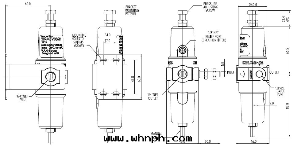 550L/min (9.17dm3/s) flow capacity at 1 bar differential